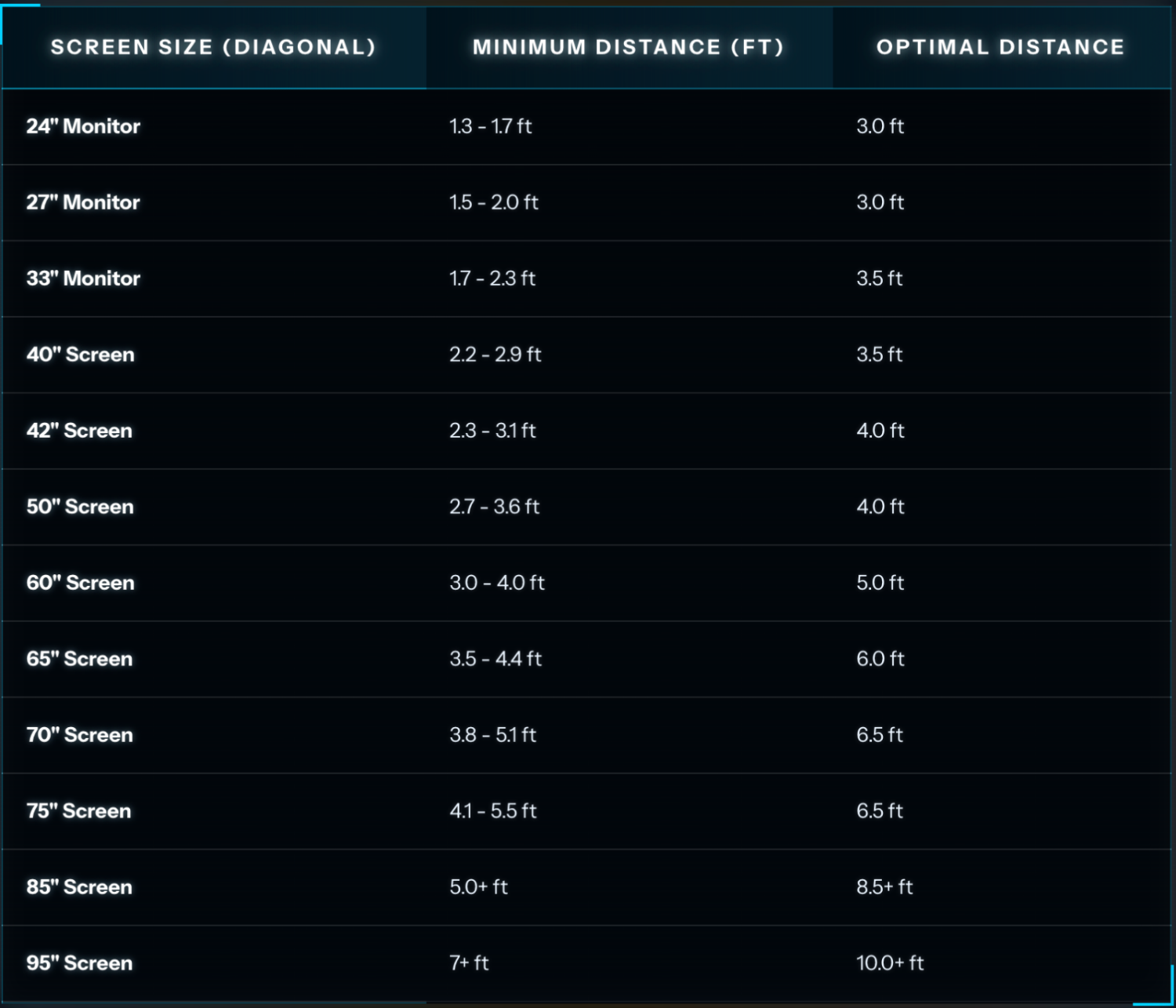 For the best gameplay experience, we recommend using a screen between 33" and 55".